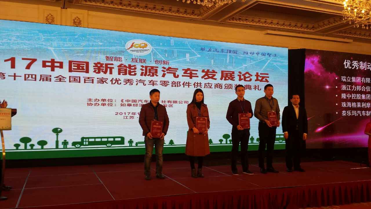 2017年12月7日,由《中国汽车报》社主办、如皋经济技术开发区协办的“2017年中国新能源汽车发展论坛暨第十四届全国百家优秀汽车零部件供应商颁奖典礼”在江苏如皋举行。隆中控股也受邀前来参加此次盛大典礼。
