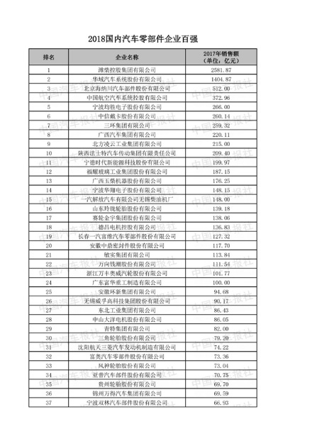 罗兰贝格管理咨询公司全球合伙人方寅亮分析指出,2017年我国汽车零部件百强企业的年营收额总计超过1.15万亿元,较2016年增长36.32%,入选最低营收额由2016年的14.0亿元增至18.88亿元,规模效应日益凸显。